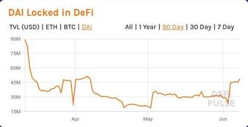 В целом принципиальная картина не изменилась: график ETH показывает всё тот же вялый интерес к DeFi; "капитализация" DeFi в долларах вплотную приблизилась к февральскому максимуму - благодаря вертолётным деньгам центро-банков на начало июня курс ETH/USD скорректировался на 80% относительно мартовского завала. Но вместе с тем на графике DAI хорошо заметен всплеск - будущий новый лидер DeFi-сектора, сервис Compaund, использует более широкий набор залоговых инструментов в сравнении с MakerDAO. И поначалу одним из основных залогововых инструментов Compaund-а помимо ETH был именно фантик DAI.
